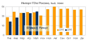 За май 2016 года размер ввоза полипропилена на территорию России был увеличен до 44.9 тысяч тонн в сравнении с 41.5 тысячами тонн за апрель этого же года. Было увеличено количество импорта полиэтилена низкого давления. В сумме поставки полиэтилена в январе-мае этого года были снижены до 187.8 тысяч тонн относительно этого же периода времени в 2015 году, когда данная цифра составляла 221.1 тысячу тонн.
