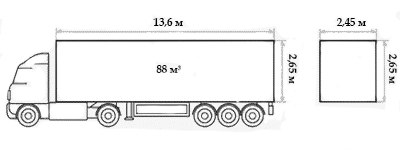 Габариты "Еврофуры" тент объёмом 82-92 м3